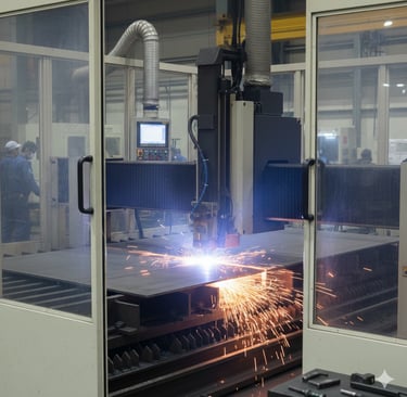 薄板・中厚板を中心とした鉄鋼材料の切断・曲げ・穴あけなどの鉄鋼加工を行っています。建設機械関連部品をはじめ、産業機械向け部材など、用途に応じた加工に対応しています。